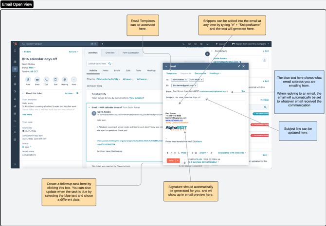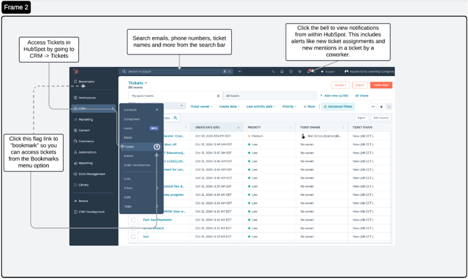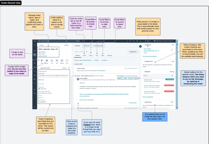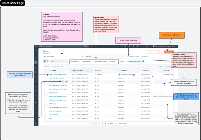 These screenshots detail areas of importance within the pipeline and ticket pages. It is a great resource to become familiar with the layout of the ticket pages and the tools available.